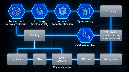 - RTL design (Verilog, VHDL, SystemVerilog)